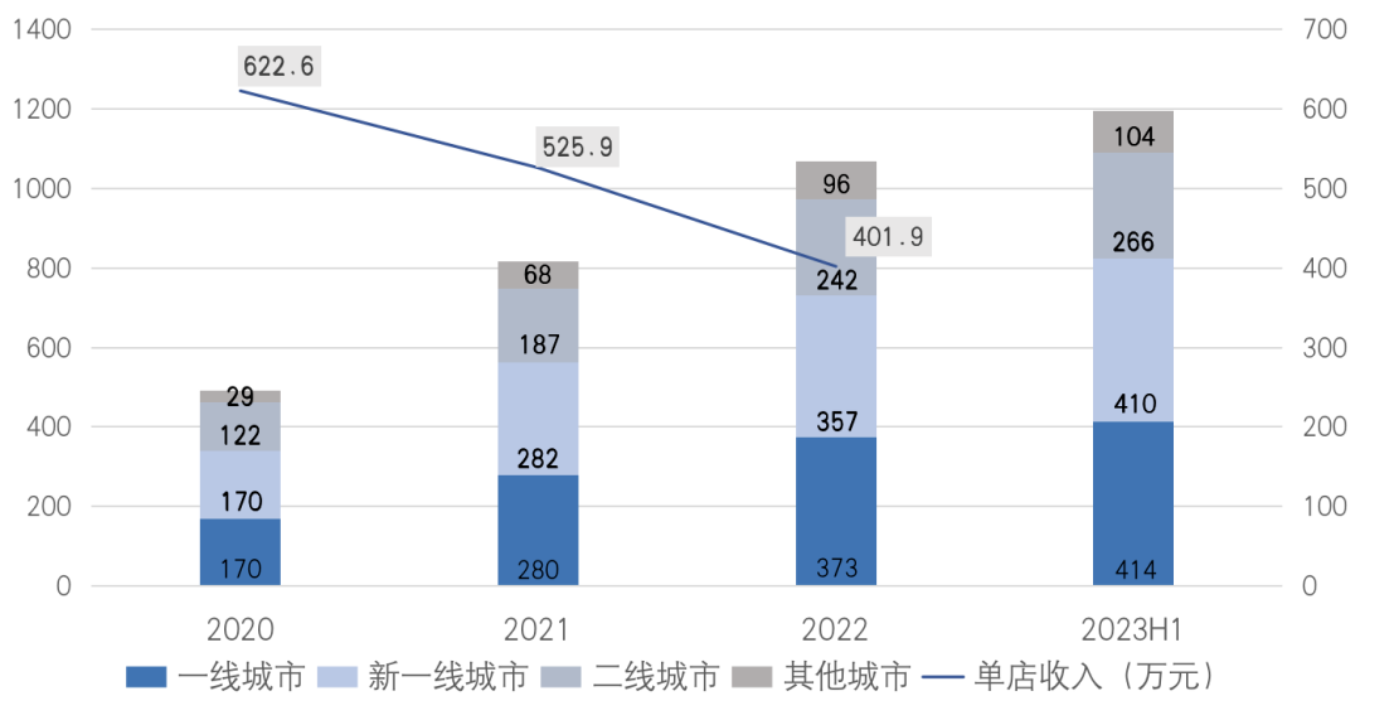 2023年初,奈雪將年度開店目標定在600家,超過去兩年開店數(shù)量之和。截至6月30日,其新開門店僅達到145家,還未完成全年拓店目標的1/3。