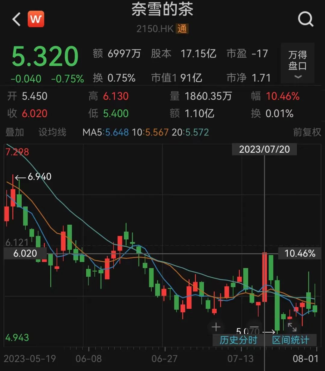 但這并未平息外界的猜疑,轉(zhuǎn)入電子結(jié)算系統(tǒng)是減持或質(zhì)押的必要前提。且在奈雪宣布開放加盟后不久,股價連續(xù)下挫,不僅吐回了此前的漲幅,還以5.11港元的收盤價刷新了年內(nèi)最低。