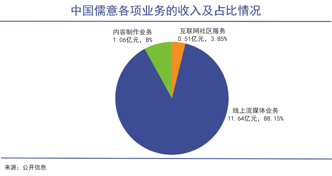 2022年,原本依靠電影投資的中國儒意,其業(yè)務(wù)構(gòu)成中,流媒體業(yè)務(wù)占比高達(dá)88%,加上互聯(lián)網(wǎng)社區(qū)增值服務(wù)占據(jù)了超九成的收入,而內(nèi)容制作僅獲得1億元收入,占比僅8%。