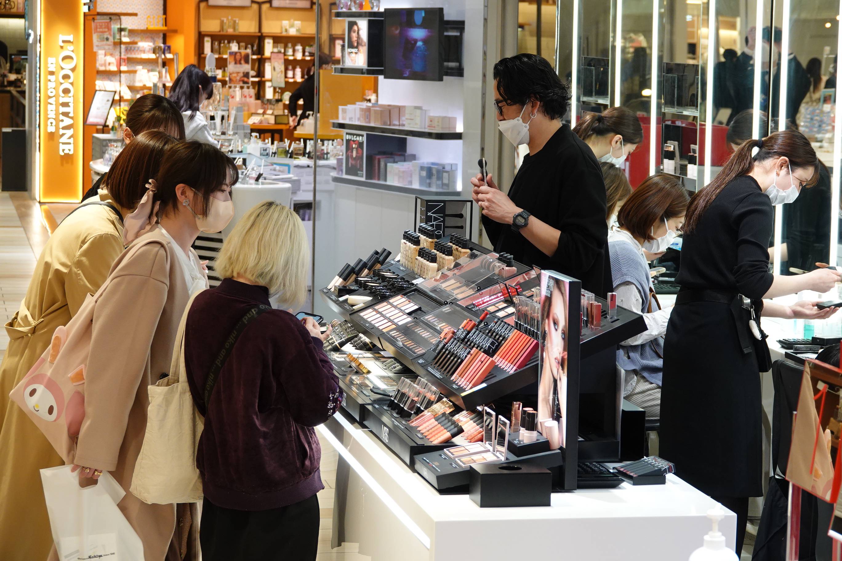 年輕女性青睞于到線下專柜試妝。圖源:The Japan Times