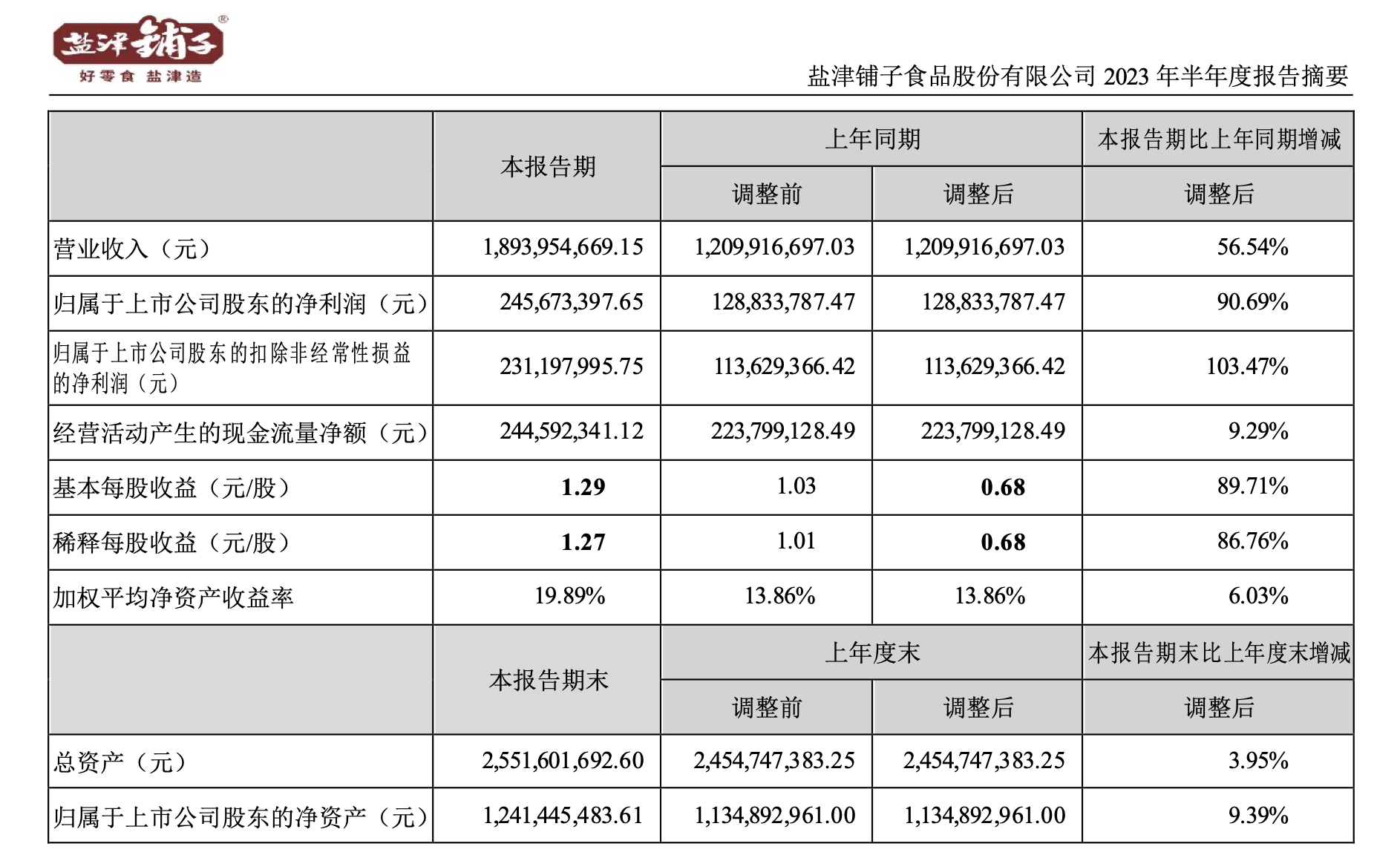 聯(lián)商快訊:8月2日,鹽津鋪子發(fā)布2023年中報。