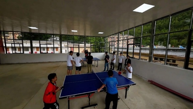 塔城中心完小位于云南省迪慶藏族自治州,學校坐落在半山腰上,在讀學生700 多人。幾年前山下的村小學全部撤銷,全鎮(zhèn)所有小學學齡的孩子都在這里寄宿就讀。經(jīng)過幾輪修繕,老校區(qū)的教室和宿舍條件都有所改善,配備了獨立食堂,去年操場也在政府的撥款支持下出新,裝上了塑膠跑道和籃球場。盡管如此,部分硬件設施依然無法滿足教學和學生住校生活的需要。體育課只有室外場地,怎么選都跳不過籃球或足球,一張斑駁的乒乓球臺孤零零地橫在屋頂,碰上雨天孩子們能做的運動項目很少;山區(qū)里食材采買道路多有不便,寄宿的學生增多后,食堂的冷柜就有點捉襟見肘。了解到這一情況,京東五星電器公益項目“星光計劃”第一時間聯(lián)系上江蘇省婦女兒童基金會旗下的“水滴公益”,聯(lián)合戰(zhàn)略合作伙伴海信共同加入“水滴公益”鄉(xiāng)村校園改造計劃第7季,為正在施工的完小公益乒乓球教室捐贈了乒乓球桌和球拍等運動器材,同時為校區(qū)的食堂捐贈一批海信商用冰柜,在解決“吃飯”這件大事的同時,豐富孩子們的課余生活。