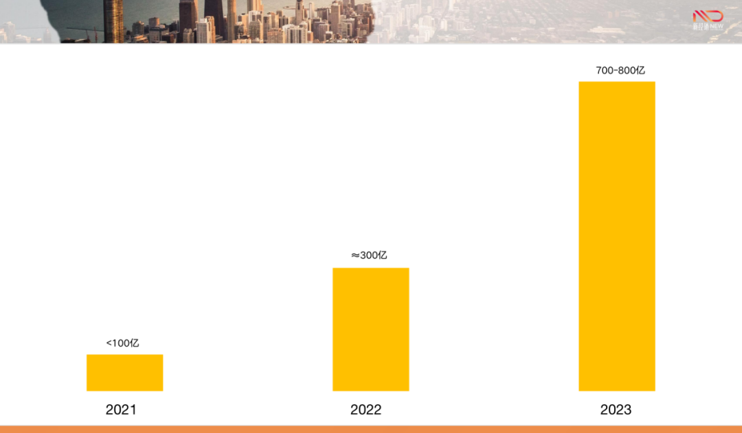 2021年不到100億,2022年差不多300億,2023年預(yù)計有700-800億的規(guī)模。