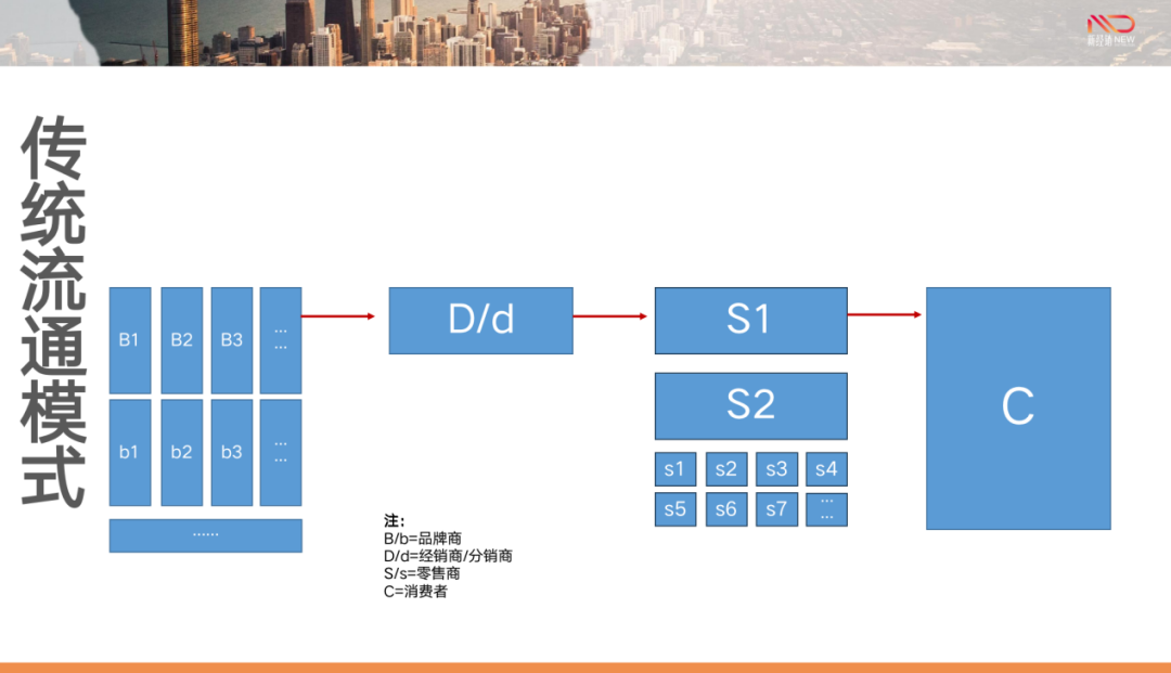 傳統(tǒng)流通模式,從工廠,到品牌中心倉,到一批二批,再到終端,最后才能到消費者手中,加倍率在1.8-2之間。