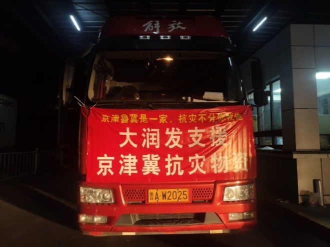 8月2日凌晨,大潤發(fā)捐贈(zèng)的第一批物資從濟(jì)南出發(fā),已于8月3日抵達(dá)涿州