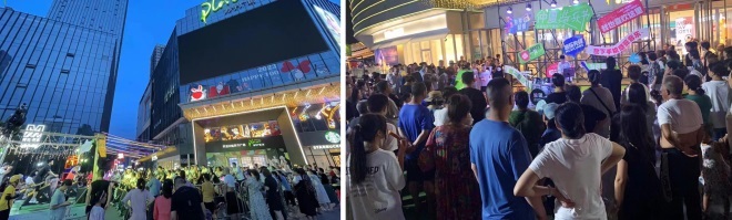 8月正值暑伏,餐飲、文旅消費(fèi)熱度持續(xù)升溫,夜經(jīng)濟(jì)成為推動(dòng)消費(fèi)升級(jí)的新引擎。蘇家屯、株洲、濟(jì)寧等蘇寧易購(gòu)廣場(chǎng)整合聚焦優(yōu)勢(shì)資源,舉辦了一系列夜間經(jīng)濟(jì)消費(fèi)活動(dòng)。其中蘇家屯區(qū)項(xiàng)目獲得政府“青年友好型街區(qū)”的選址,在夏夜推出青年Yeah市集等一系列活動(dòng)。以集裝箱為載體,引進(jìn)各種品類美食小吃,與場(chǎng)內(nèi)經(jīng)營(yíng)做互補(bǔ),滿足消費(fèi)者夏日戶外消夏需求,同時(shí)針對(duì)大學(xué)畢業(yè)創(chuàng)業(yè)者設(shè)置創(chuàng)業(yè)特殊優(yōu)惠政策,吸引青年人加入,美食匯聚擔(dān)當(dāng)區(qū)域生活中心。同時(shí),結(jié)合年輕消費(fèi)者愛好,舉辦仲夏造浪音樂節(jié),更是通過(guò)絢爛煙花的燃放,點(diǎn)燃青年人的熱情。貼合Z世代喜好策劃民謠音樂節(jié)、狼人殺轟趴游戲、舞蹈、調(diào)酒表演、變臉、雜技等特色活動(dòng),實(shí)現(xiàn)周周有活動(dòng),充分培養(yǎng)消費(fèi)者夏夜的到店習(xí)慣,有效聚集區(qū)域年輕客群,展現(xiàn)激昂活力。