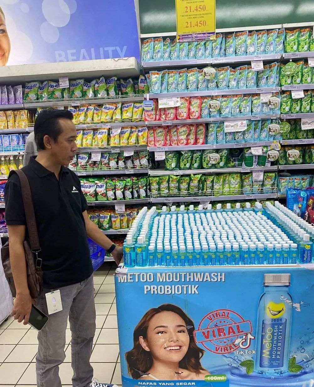 令當(dāng)?shù)厝寺愿畜@奇的是,2023年一季度以來,一款中國人做的漱口水開始在Indomaret和Alfamart攻城掠地。目前,這款名為Metoo的漱口水已達(dá)到該品類KA渠道(大型連鎖商超渠道,如沃爾瑪)的銷量前三。而在上線至今的15個(gè)月的時(shí)間里,它早已在TikTok等電商端銷量登頂。