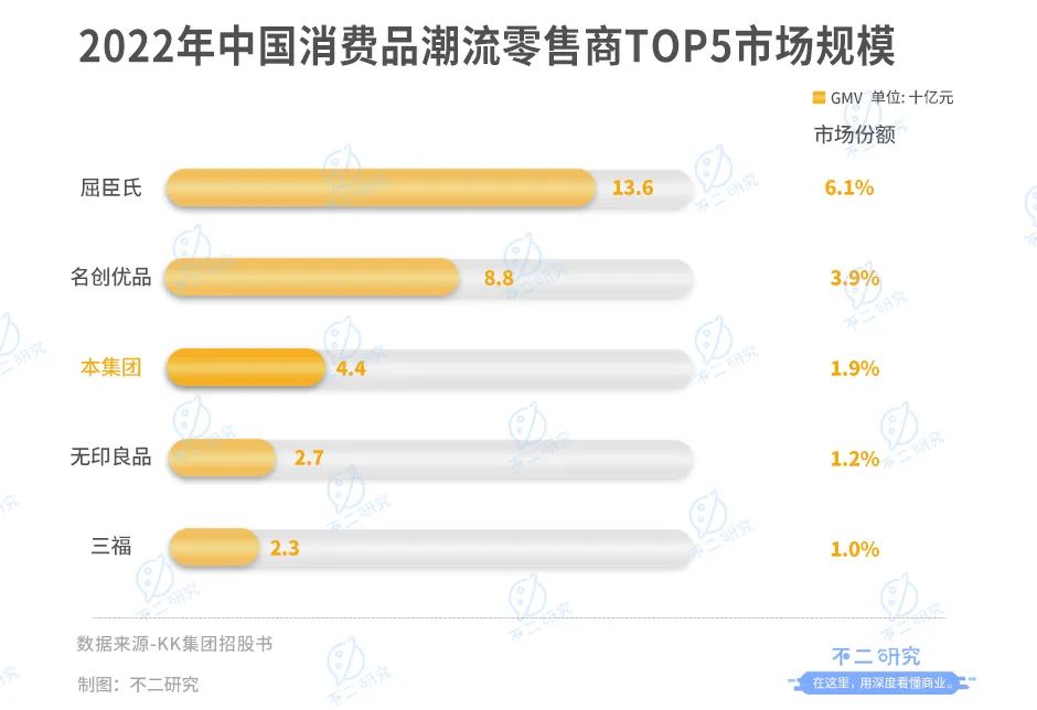 在新版招股書(shū)中,其援引弗若斯特沙利文資料稱(chēng),按2022年的GMV計(jì)算,KK在中國(guó)生活方式消費(fèi)品潮流零售市場(chǎng)十大參與者中,增長(zhǎng)速度排名第一;今年第一季度,其GMV為16.31億元,同比增長(zhǎng)33.53%。