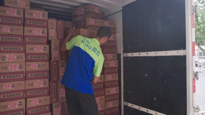 菜鳥專車師傅為京津冀及東北受災(zāi)地區(qū)搬運物資