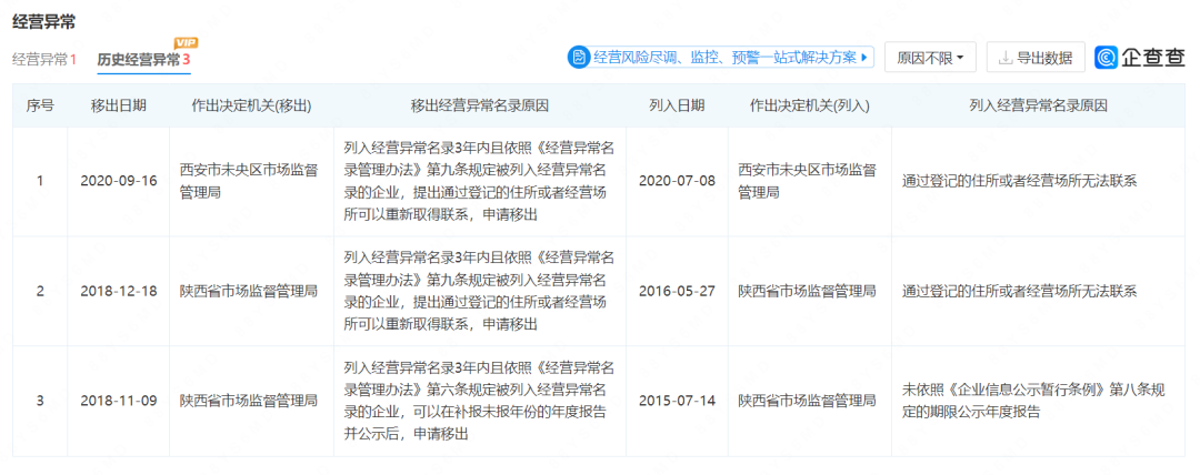 企查查信息顯示,該公司已經(jīng)三次被當(dāng)?shù)厥袌霰O(jiān)督管理局列入經(jīng)營異常名單。而該博主所購買到的羊肉正好是陜西海祥食品被列入異常期間生產(chǎn)的。
