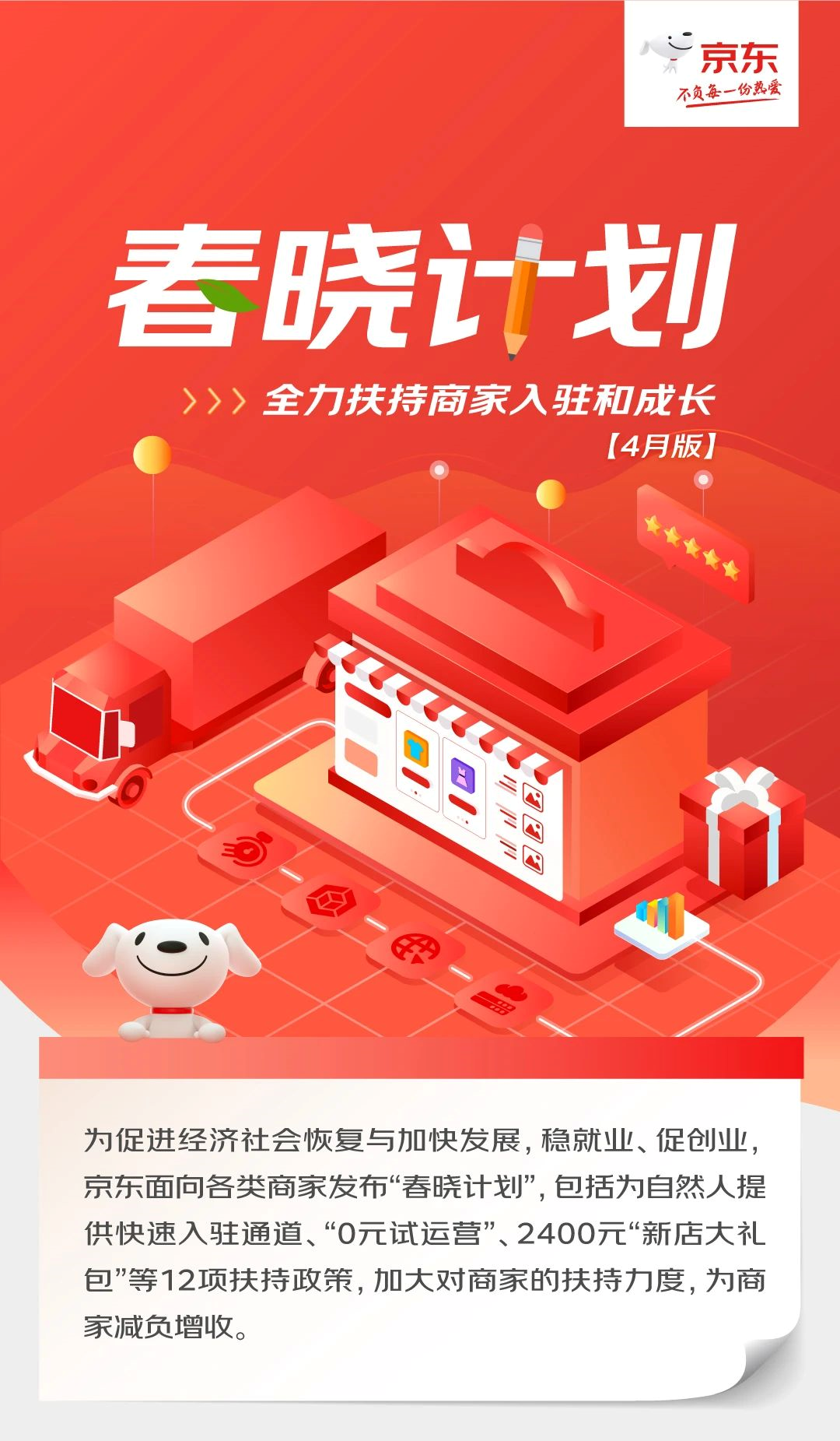 從年初,京東面向各類商家發(fā)布了“春曉計劃”,其中包括為自然人提供快速入駐通道、0元試運營、2400元新店大禮包等12項扶持政策。