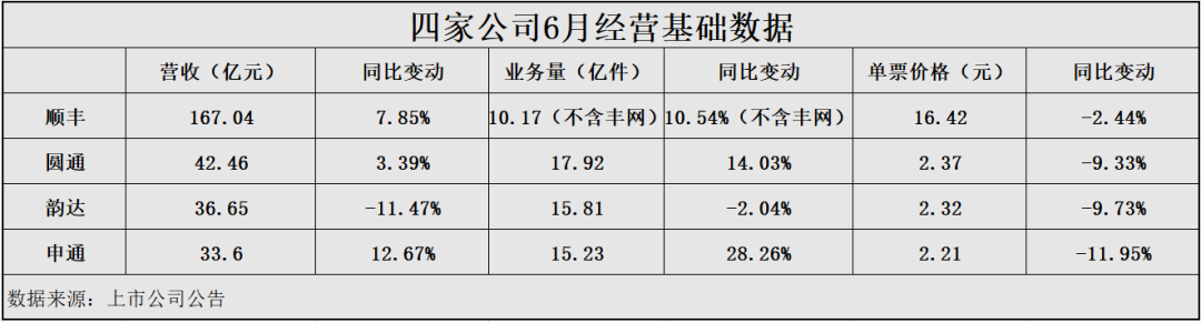 7月19日晚間,A股四大快遞公司順豐控股、圓通速遞、韻達(dá)股份、申通快遞4家發(fā)布了6月份的月度經(jīng)營(yíng)數(shù)據(jù),上半年整體表現(xiàn)也見(jiàn)分曉。