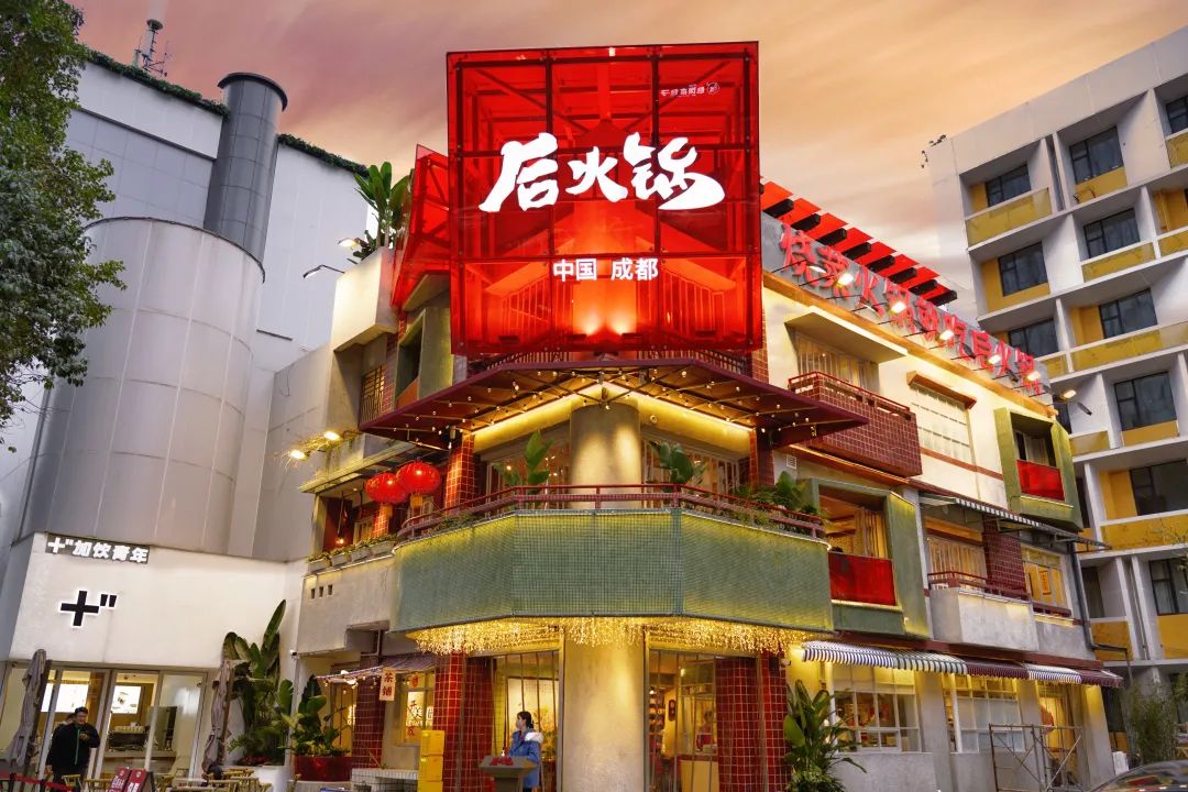 后火鍋在鄭州的門店風(fēng)格也極具差異化,復(fù)古元素+圓燈籠+紅色座椅+賽博朋克字體,不僅可以突顯門店氛圍,也容易產(chǎn)生場景記憶感。在接下來的新開門店中,還會(huì)打造出新的門店模型,適配不同的城市場景。