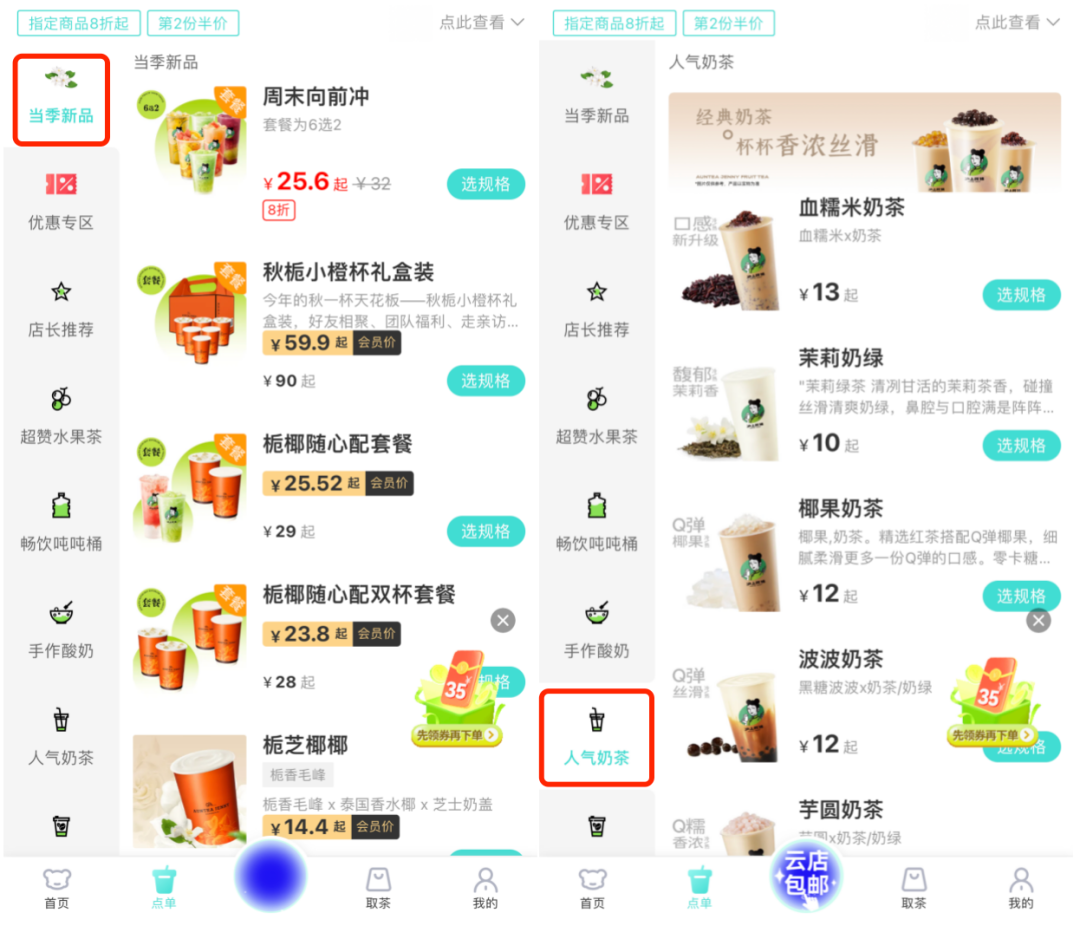 對于缺乏競爭壁壘的茶飲品牌來說,出圈的常用手段是先打造核心大單品,如喜茶的多肉葡萄、奈雪的“霸氣”系列等。當(dāng)品牌形成強勢品類認知時,再圍繞單品建立豐富的產(chǎn)品矩陣,并不斷強化消費者心智。
