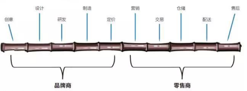 劉強(qiáng)東曾提出的“十節(jié)甘蔗”理論,即零售、消費品行業(yè)的價值鏈分為創(chuàng)意、設(shè)計、研發(fā)、制造、定價、營銷、交易、倉儲、配送、售后等十個環(huán)節(jié),其中前5個歸品牌商,后面5大環(huán)節(jié)則歸零售商。京東的定位是啃好后五節(jié)甘蔗,本質(zhì)上也是做好供應(yīng)鏈。