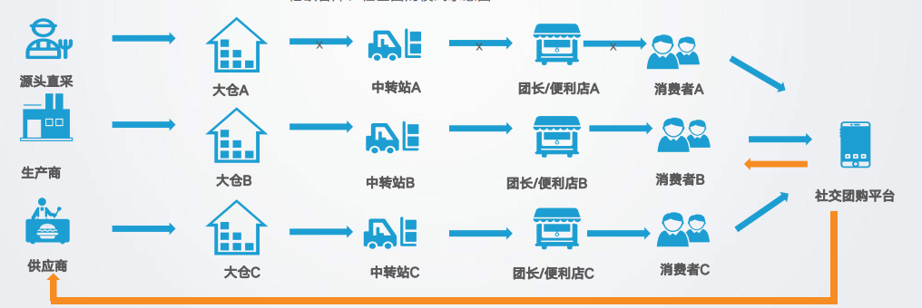 社區(qū)團(tuán)購的物流鏈為“供應(yīng)商-中心倉/網(wǎng)格倉/共享倉-團(tuán)長-消費者”,京東倉庫剛好可以充當(dāng)倉儲的角色。
