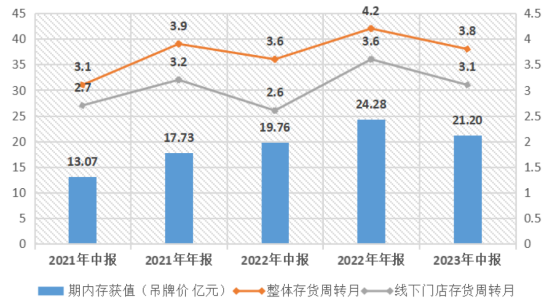 在劉國忠的介紹中,其2022年的采購額比2019年多出30%,5個(gè)月內(nèi)的售罄率達(dá)到80%至85%。進(jìn)入奧萊門店的折扣率也從2019年的7.1折提升至7.4、7.5折。