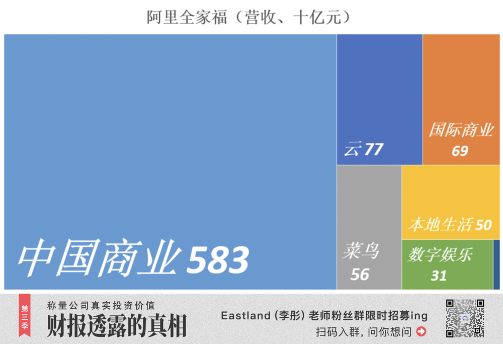 從2023年財(cái)年(截至2022年3月31日),阿里開始按中國(guó)商業(yè)、國(guó)際商業(yè)、本地生活服務(wù)、菜鳥、云業(yè)務(wù)、數(shù)字娛樂、創(chuàng)新等七個(gè)經(jīng)營(yíng)分部披露業(yè)績(jī),包括營(yíng)收、經(jīng)營(yíng)利潤(rùn)、EBITDA等數(shù)據(jù)。