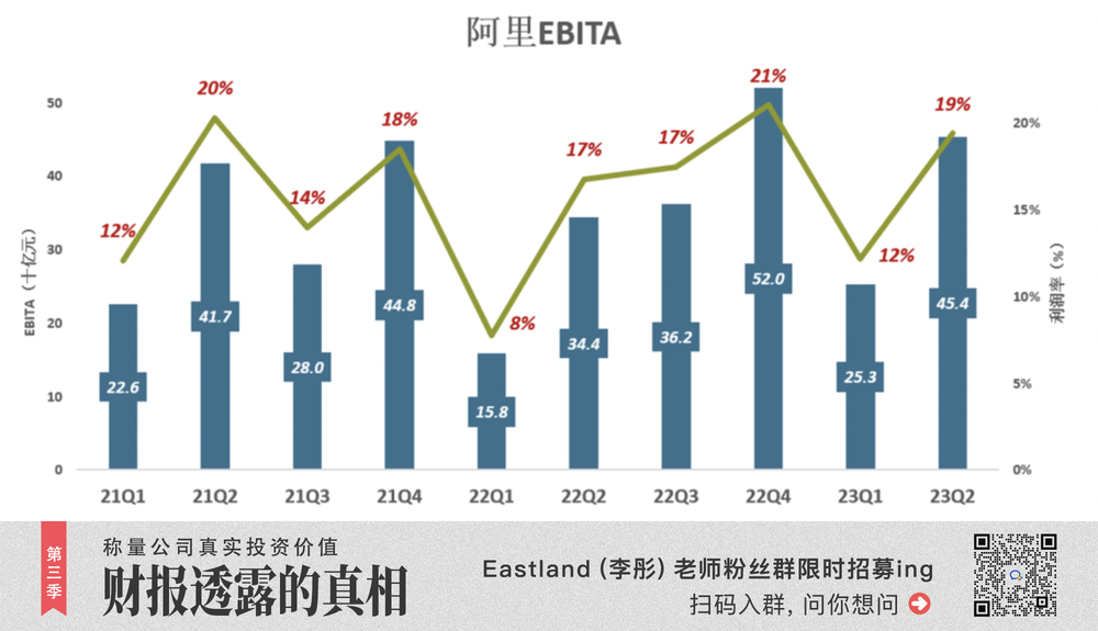 呈百舸爭(zhēng)流局面下,人們的活力被激發(fā)出來。2023年Q2,阿里集團(tuán)EBITA達(dá)454億,成為史上效益最好的二季度(電商季節(jié)性波動(dòng)顯著,峰值在Q4)。