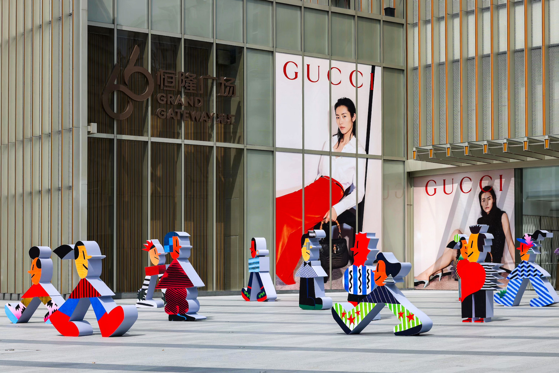 在港匯恒隆外廣場,藝術(shù)家雷磊設(shè)計(jì)了15個(gè)或走或停的人物形態(tài)。每個(gè)人物形象各不相同,身上的圖案和紋理的拼貼圖像皆延續(xù)了藝術(shù)家獨(dú)特的創(chuàng)作手法。雖是由簡單的幾何圖形構(gòu)造,卻都用他們自信上揚(yáng)的嘴角,構(gòu)成了與每一個(gè)人的心靈共通。他們跨越藝術(shù)的邊界,不受空間的束縛,在港匯恒隆外廣場漫步,沉浸在這個(gè)摩登都市地標(biāo)所展現(xiàn)出的悠然節(jié)奏;同時(shí)也是邀請穿行而過的顧客們一起,自信地,自由地,自在地,“走走停!。