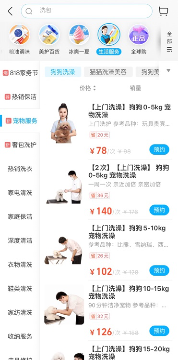 App內(nèi)顯示,消費者可在線預約貓、狗洗澡、美容,由專業(yè)寵物護理師、寵物美容師上門提供服務(wù)。