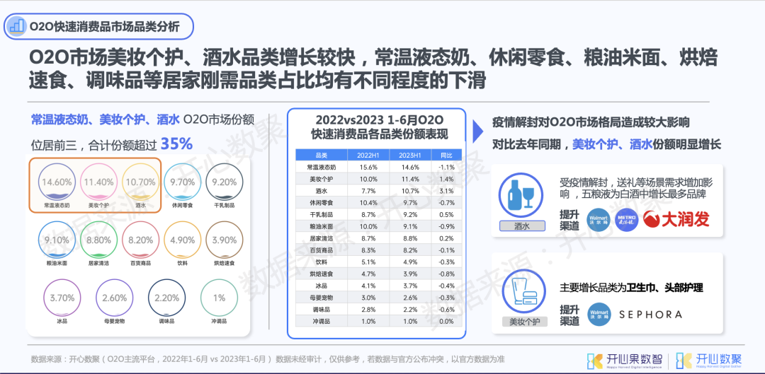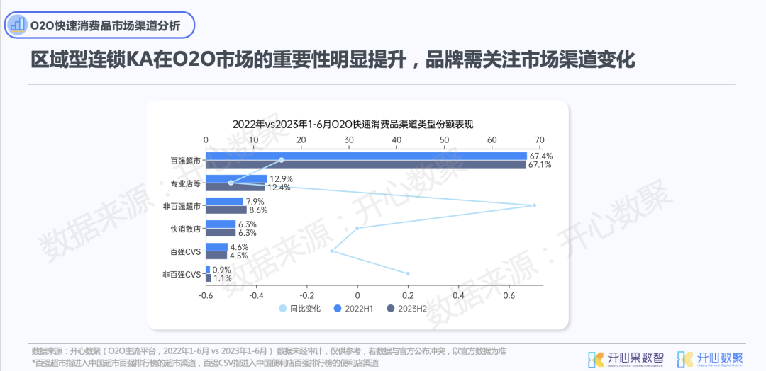 8月15日,開(kāi)心數(shù)聚直播分享解讀《2023上半年O2O市場(chǎng)洞察報(bào)告》,從市場(chǎng)趨勢(shì)、城市表現(xiàn)、渠道表現(xiàn),以及快消品品類等多個(gè)角度,對(duì)O2O快速消費(fèi)品市場(chǎng)進(jìn)行洞察。本文將為您呈現(xiàn)要點(diǎn)回顧。