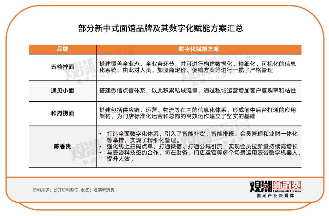 隨著數(shù)字化技術(shù)的應(yīng)用,門店經(jīng)營管理變得更加精準、便捷,連鎖開店的規(guī)模效益也日漸凸顯。在多重困境重壓之下,數(shù)字化對新中式面館品牌來說或許是唯一具有確定性的“正確的事”。