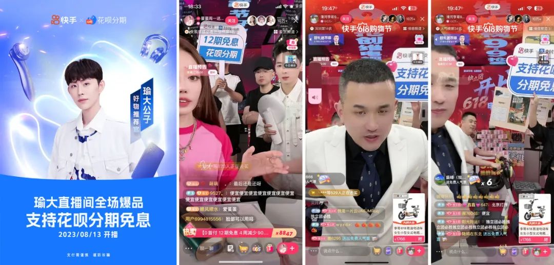 以快手為例,8月13日,快手超頭主播瑜大聯(lián)手花唄,帶來(lái)了一場(chǎng)花唄分期免息專(zhuān)場(chǎng)直播。除了瑜大之外,蛋蛋、徐婕、清河李哥、趙夢(mèng)澈等主播都在直播間力推過(guò)分期免息商品,單場(chǎng)直播分期GMV最高超過(guò)1億。