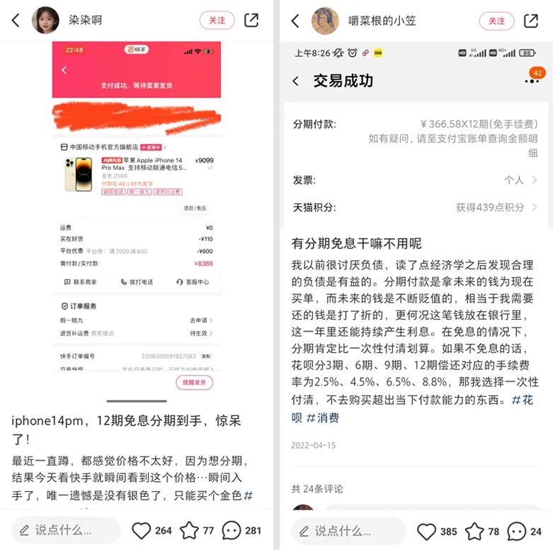 從社交平臺(tái)上可以看到,部分消費(fèi)意識(shí)較強(qiáng)的用戶(hù)已經(jīng)意識(shí)到了分期免息的優(yōu)勢(shì),自發(fā)性地將這項(xiàng)服務(wù)“安利”給更多小伙伴。