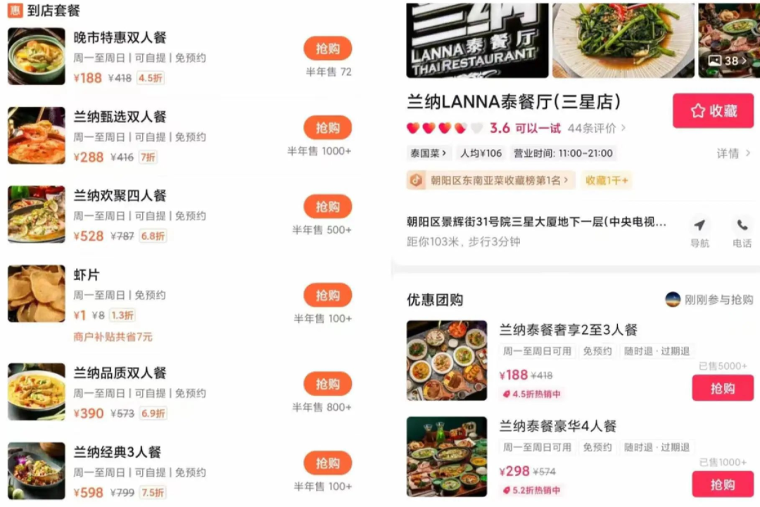 圖/同一商家在抖音和大眾點(diǎn)評(píng)上不同類(lèi)型的套餐 來(lái)源/圓圓供圖
