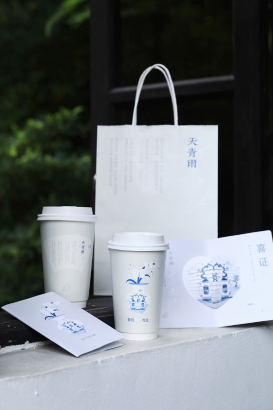 隨著天青雨新品在七夕這一傳統(tǒng)喜悅節(jié)點(diǎn)與消費(fèi)者的“相會”,喜茶同時致力于通過中式靈感設(shè)計(jì)和節(jié)日活動,帶給消費(fèi)者完整的品牌體驗(yàn)。在與方文山的特邀創(chuàng)作合作中,喜茶還以青花瓷底紋與工筆畫風(fēng)味為設(shè)計(jì)靈感,同步發(fā)布了一支新中式風(fēng)格動畫,以及由此延展的天青雨主題定制杯、紙袋的全新包材,和七夕限定香囊、七夕喜證周邊。