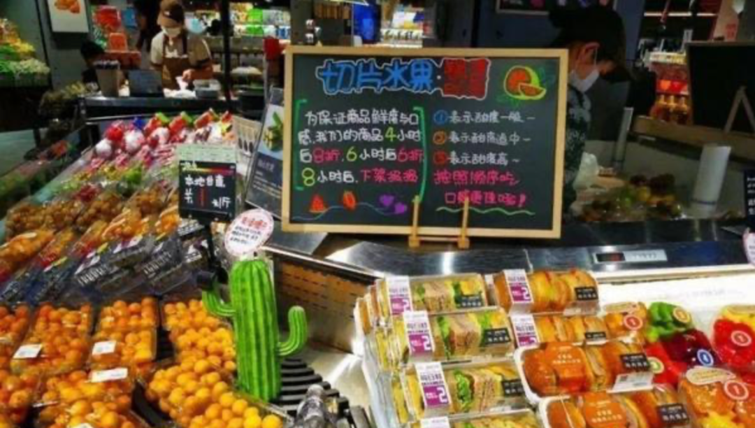 在這里,顧客可以享受100多項(xiàng)免費(fèi)的服務(wù)。比如,陳列架上有詳盡的商品說(shuō)明,還專門列出海鮮等物品的各種吃法、個(gè)別食物的禁忌等。高檔海鮮可以免費(fèi)加工,平價(jià)海鮮可以挑除蝦線。顧客買面粉,如果不知道是選擇高筋面粉還是低筋面粉,旁邊會(huì)有選擇指南。就連用手難搓開(kāi)的購(gòu)物袋,也配備了濕手器。需要特別注意新鮮度的生鮮產(chǎn)品,胖東來(lái)會(huì)精準(zhǔn)把控售賣時(shí)效。通常,面包、肉類的保質(zhì)期只有一天;水果如果切開(kāi)4小時(shí)以上,則8折出售,6小時(shí)6折,超過(guò)8小時(shí)就會(huì)下架處理。