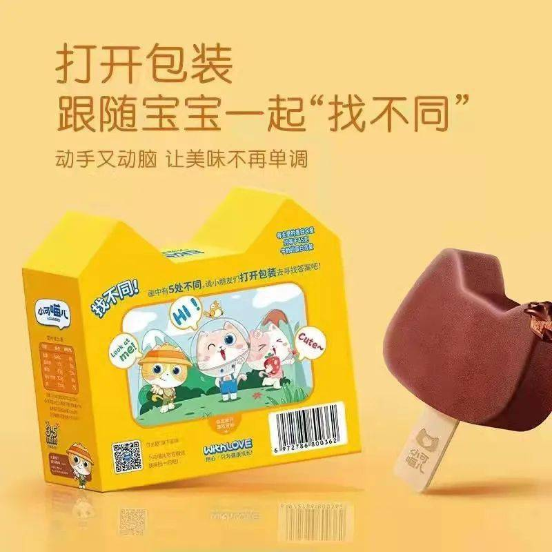 在品牌定位上,小可喵兒依然堅(jiān)持健康冰淇淋的大方向。除了延續(xù)“無(wú)蔗糖”的傳統(tǒng)之外,其原料的使用上以兒童健康需求為方向,為兒童提供無(wú)蔗糖、高蛋白的輕負(fù)擔(dān)冰淇淋。并在外包裝上設(shè)置了一個(gè)益智游戲,在滿足兒童口腹之欲的同時(shí),也能成為鏈接父母和孩子之間的紐帶。同時(shí)滿足消費(fèi)者對(duì)好吃、健康和情感的需求,同時(shí)也進(jìn)一步增強(qiáng)年輕消費(fèi)者對(duì)品牌的粘性。