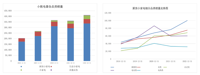 圖:小熊電器各品類銷量 來源:Wind,36氪制圖