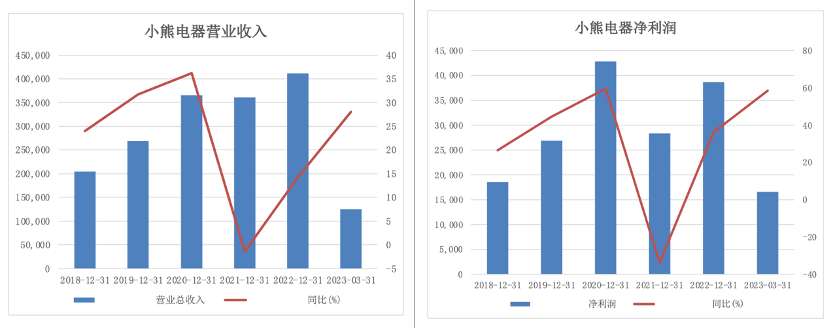 圖:小熊電器營收&凈利潤 來源:Wind,36氪制圖