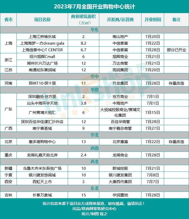 附:2023年7月全國新開商業(yè)項(xiàng)目統(tǒng)計(jì)表