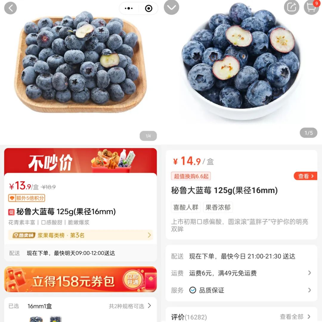 大潤(rùn)發(fā)秘魯大藍(lán)莓(16mm+)價(jià)格為13.9元,比盒馬還要便宜一元;大潤(rùn)發(fā)黃油大羊角210g/袋(4只)價(jià)格為14.9元,盒馬黃油大羊角240g/袋(4只)的價(jià)格為22.9元,按克數(shù)折合下來(lái)也是大潤(rùn)發(fā)更為便宜。