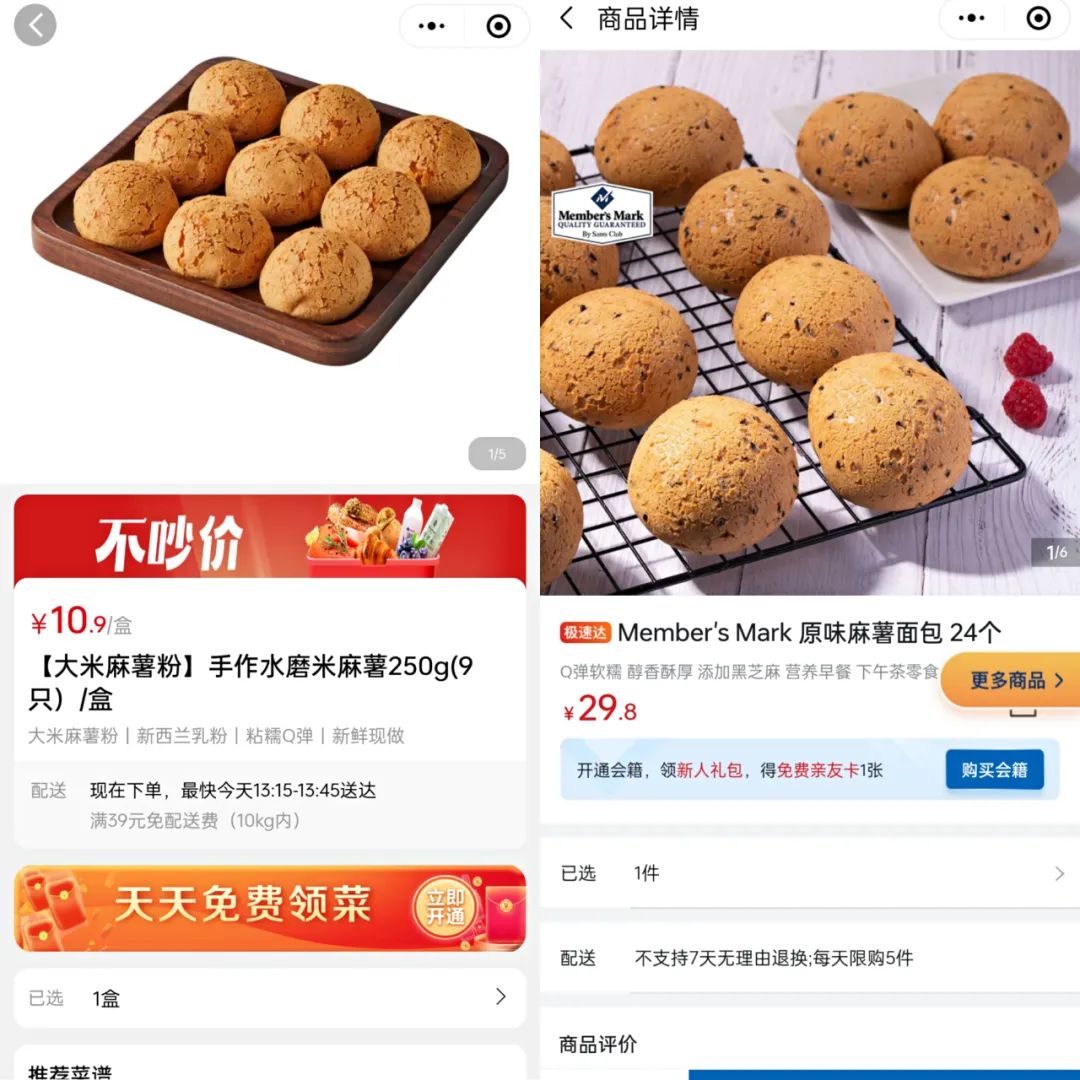 其中,大潤(rùn)發(fā)手作水磨米麻薯價(jià)格為10.9元,折合每只1.2元,而山姆的價(jià)格為1.24/個(gè)。