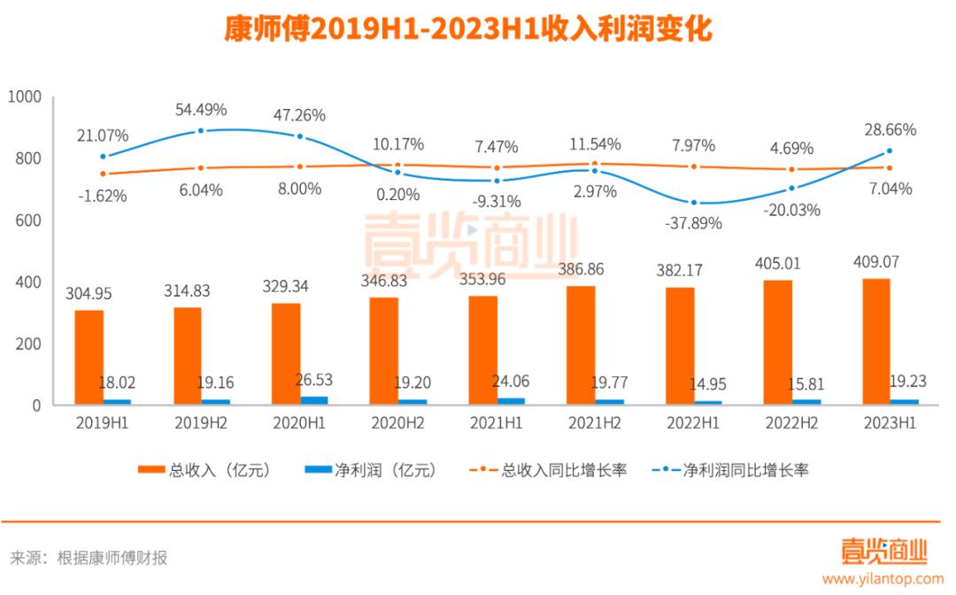 8月22日,康師傅發(fā)布了2023年上半年財(cái)報(bào)。財(cái)報(bào)顯示,康師傅上半年總收入為409.07億億元,同比增長(zhǎng)7.04%;凈利潤(rùn)為19.23億元,同比增長(zhǎng)28.66%,收入利潤(rùn)雙雙恢復(fù)增長(zhǎng)。