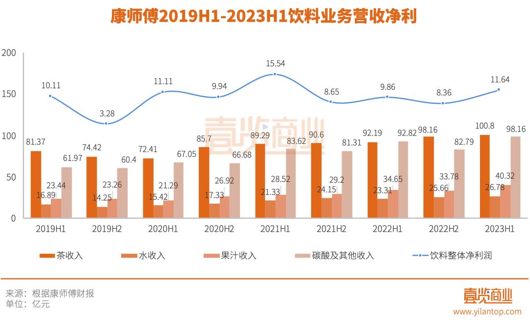 其中即飲茶品類收入100.80億元,首次突破百億大關(guān),同比增長(zhǎng)9.34%,包裝水品類收入26.78億元,同比增長(zhǎng)14.91%,果汁品類收入40.32億元,同比增長(zhǎng)16.36%。而碳酸、咖啡、功能、乳酸菌及其他品類飲料收入98.16億元,同比增長(zhǎng)5.74%,延續(xù)了增長(zhǎng)疲態(tài)。去年下半年,包括百事可樂(lè)在內(nèi)的碳酸及其他飲料收入為82.79億元,同比僅微增1.82%。
