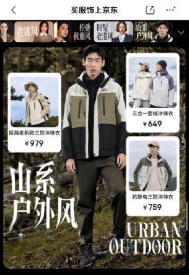 此次“秋尚新”期間,京東服飾針對早秋新品的風格特點,聯動品牌推出了溫柔芭蕾風、運動休閑風、北歐輕奢風、靜奢風、老錢風、松弛優(yōu)雅風、時髦老港風、山系戶外風8大早秋新品風格專區(qū)。其中,運動休閑風與山系戶外風均是將運動、戶外、休閑有機結合。以沖鋒衣為例,8月以來,軟殼沖鋒衣在京東搜索熱度增長近120%,面料的迭代更新在保證消費者穿著動感、舒適的同時兼具時髦感,打破“束縛”更自在。