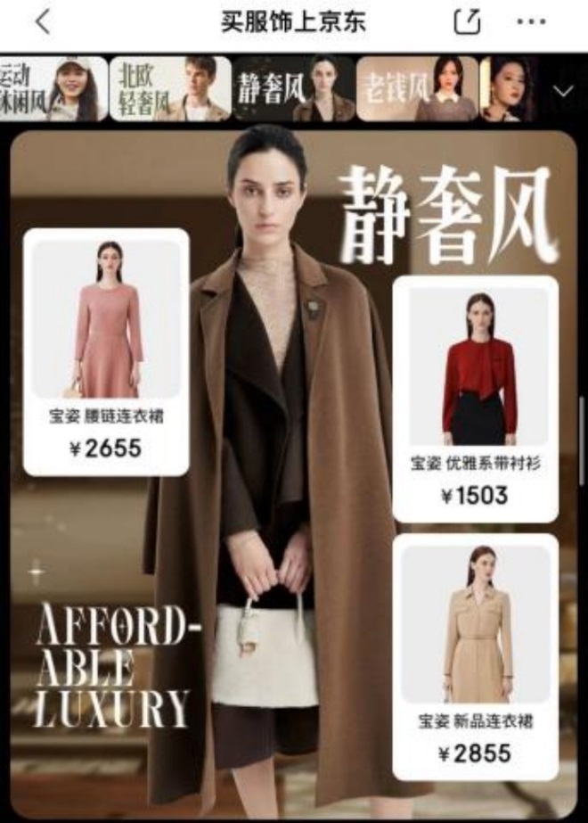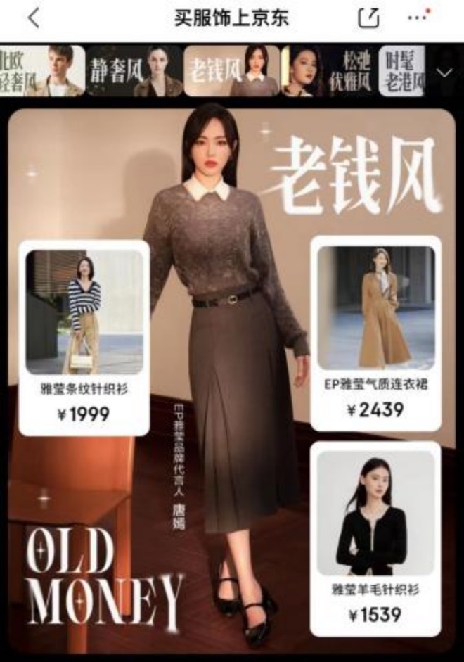 老錢風是指以黑白灰或大地色系的搭配為主,追求精美的細節(jié)和高品質面料,款式經典不易過時,受眾人群主要為職場精英;靜奢風則為老錢風的延續(xù)和進階,其更注重“低調”,甄選的高端面料,受到更多追求品質的消費者青睞。今年京東秋尚新,更多商家紛紛在面料上升級推新,山羊絨材質的品類上新數量同比增長近150%。