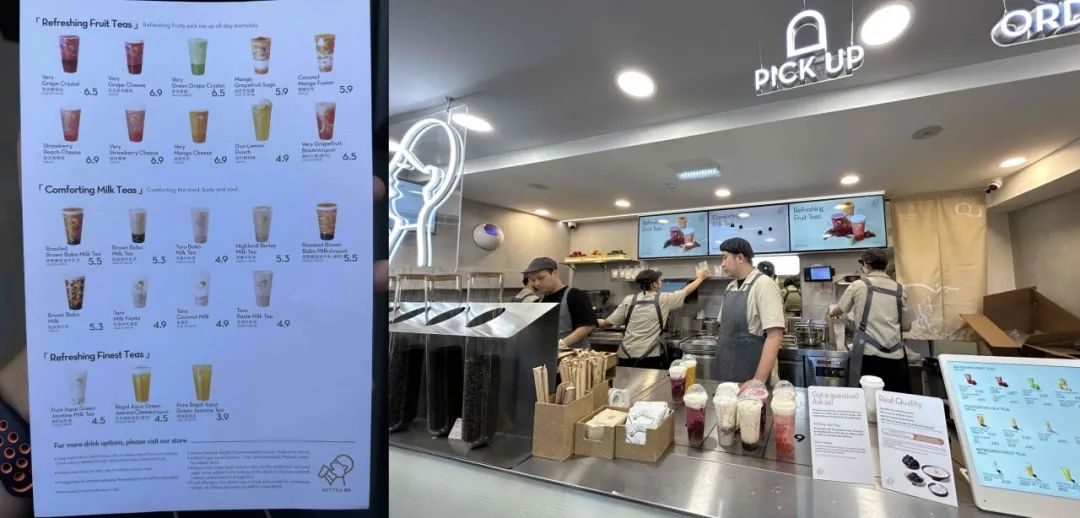 他們只保留了國內(nèi)最經(jīng)典的22個SKU售賣,例如黑糖波波、芝芝莓莓、楊枝甘露等。當(dāng)然,價格在英國翻了兩番:最便宜的純茶需要35元人民幣一杯,而最貴的多肉葡萄售價達(dá)到了64元。