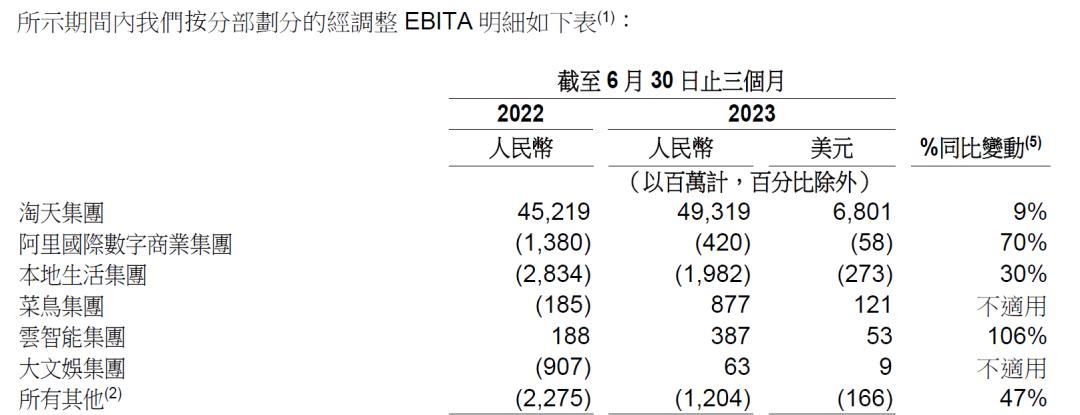 六大業(yè)務(wù)集團(tuán)中,淘天集團(tuán)、菜鳥集團(tuán)、智能云集團(tuán)和大文娛集團(tuán)實(shí)現(xiàn)季度盈利,阿里國際數(shù)字商業(yè)集團(tuán)和本地生活集團(tuán)同比收窄虧損。