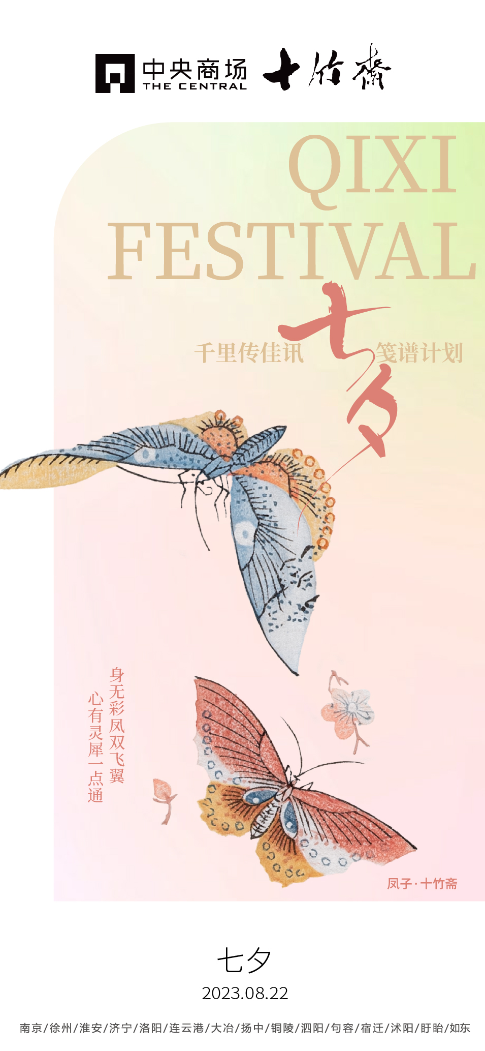 博大精深的中華文化是堅定文化自信的基礎(chǔ)!近年來,國家高度重視中國傳統(tǒng)節(jié)日,實施中國傳統(tǒng)節(jié)日振興工程,為深入貫徹中國傳統(tǒng)節(jié)日的發(fā)展策略,中央商場與百年瑰寶十竹齋強強聯(lián)手,在浪漫七夕季深耕“箋譜”文化,橫跨五省15城17店,共襄文化之旅,以跨界文商旅多元合作形式,為顧客描繪出一封“傳統(tǒng)文化IP+現(xiàn)代商業(yè)創(chuàng)新”的別致情書!