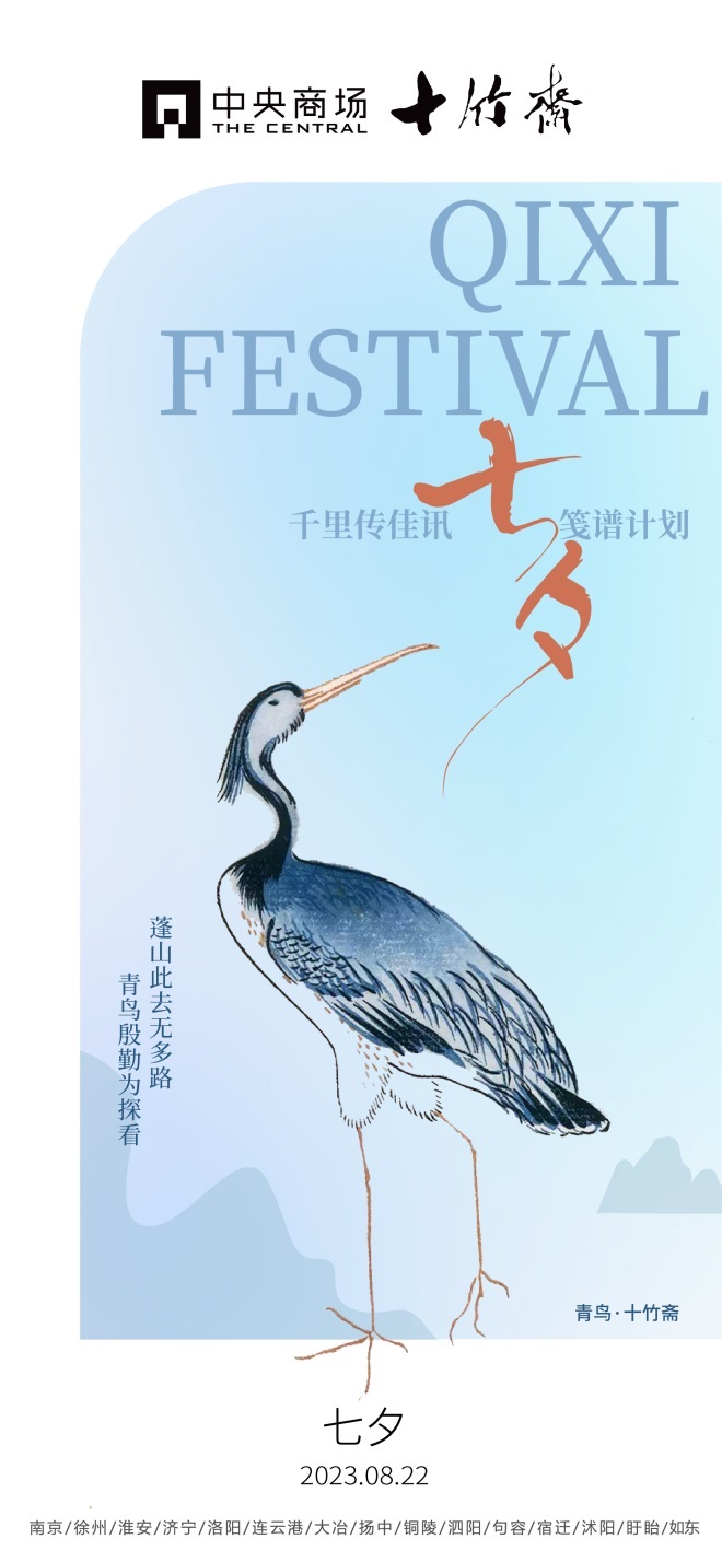 本次七夕檔期,中央商場以《十竹齋箋譜》為設(shè)計基底,通過“千里傳佳訊”的古典主題,表達了中央商場在這個浪漫日子對廣大情侶的祝福,緊密貼合七夕氛圍!