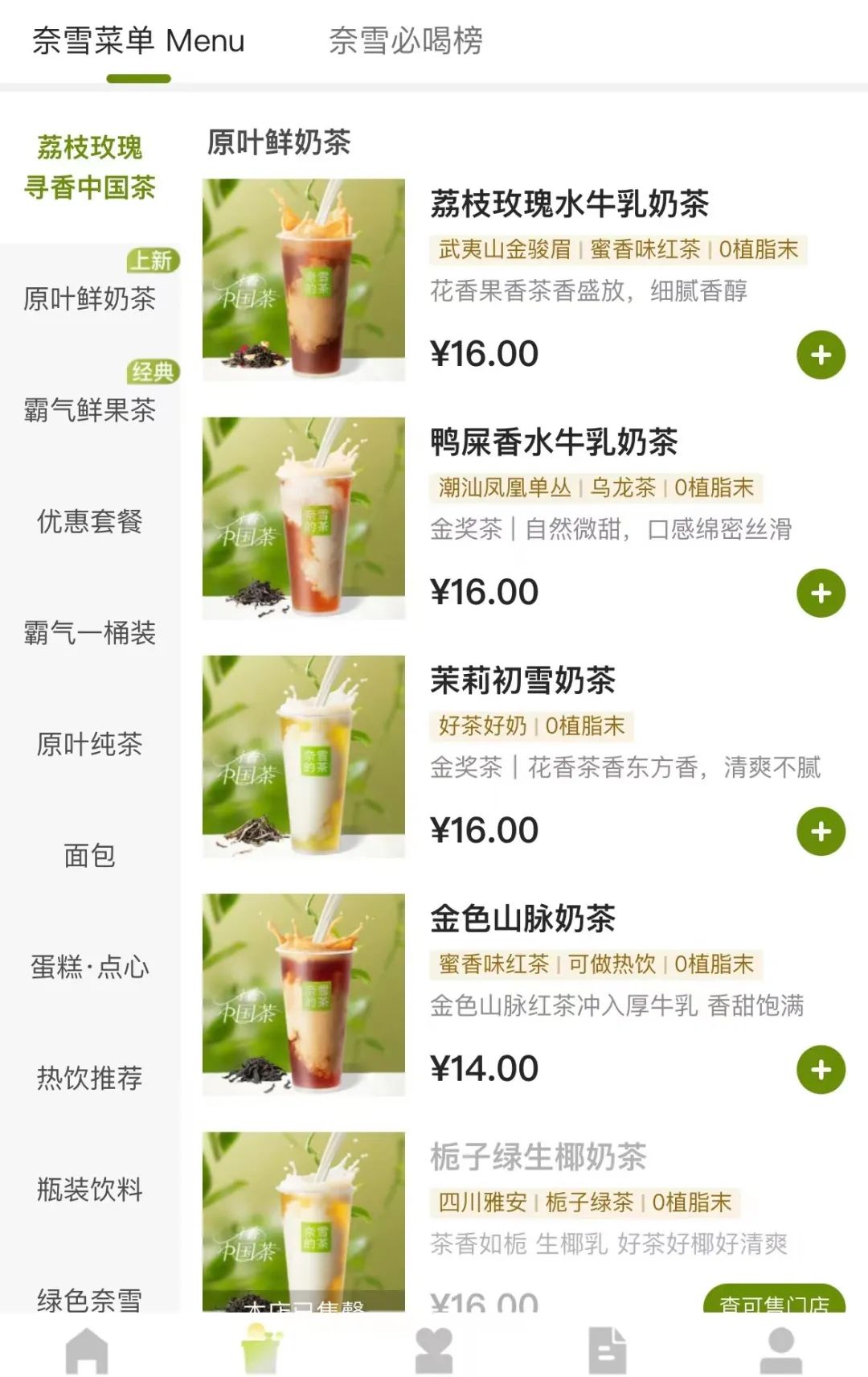 可以觀察到,奈雪此次活動(dòng)選品僅涉及鮮奶茶一個(gè)品類,使用到鴨屎香、茉莉初雪、梔子綠茶等多款品牌特色茶底,并不是大范圍全線降價(jià)。