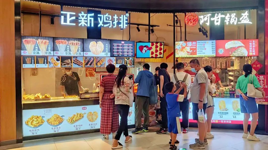 只要是工作日的飯點(diǎn),大食代里會(huì)涌入大量apm附近的打工人。在這個(gè)大食代里充斥著20-30元客單價(jià)、很難有人叫得出名號(hào)的品牌,但基本上每個(gè)檔口前都排滿了細(xì)長的隊(duì)伍,2400平的大食代里熙熙攘攘、好不熱鬧。
