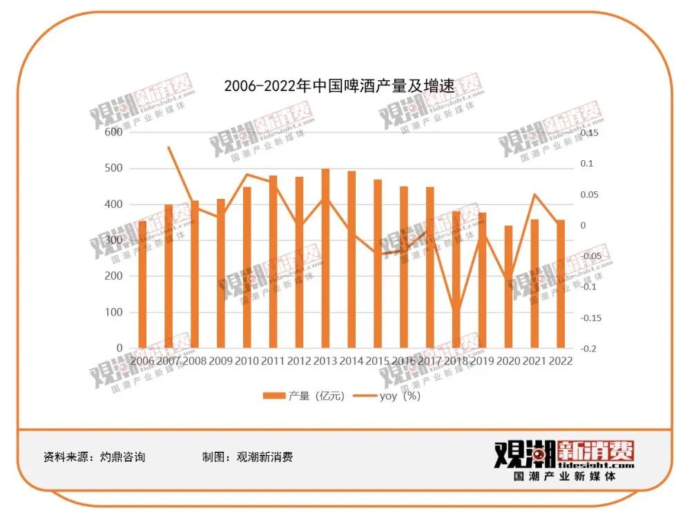 我國啤酒自2013年產(chǎn)量達(dá)到498.3億升的頂峰,自此增長(zhǎng)率長(zhǎng)期維持負(fù)值;然而,精釀啤酒是其中的例外。
