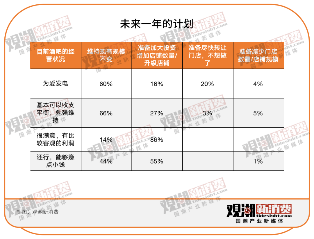 《2022中國精釀酒吧白皮書》顯示,僅有2.5%的精釀酒吧有“可觀利潤(rùn)”,77%的精釀酒吧“勉強(qiáng)維持”,20%的精釀酒吧“還在貼錢”,8%的人打算關(guān)店或減少規(guī)模。但是,仍有38%的人打算加大投資。